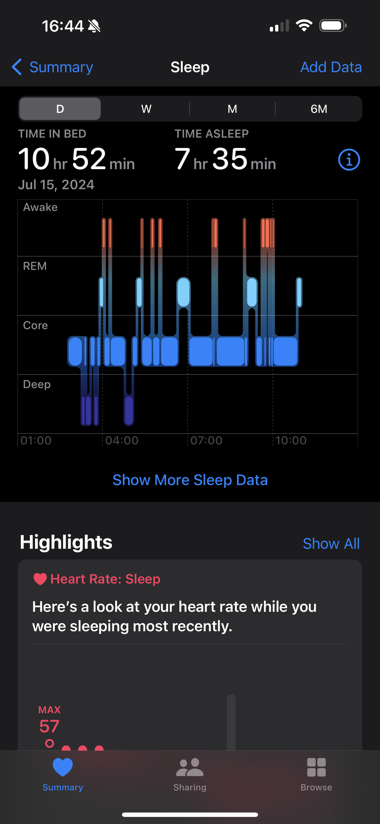 - Apple Health > Sleep > This night and screenshot the sleep stages